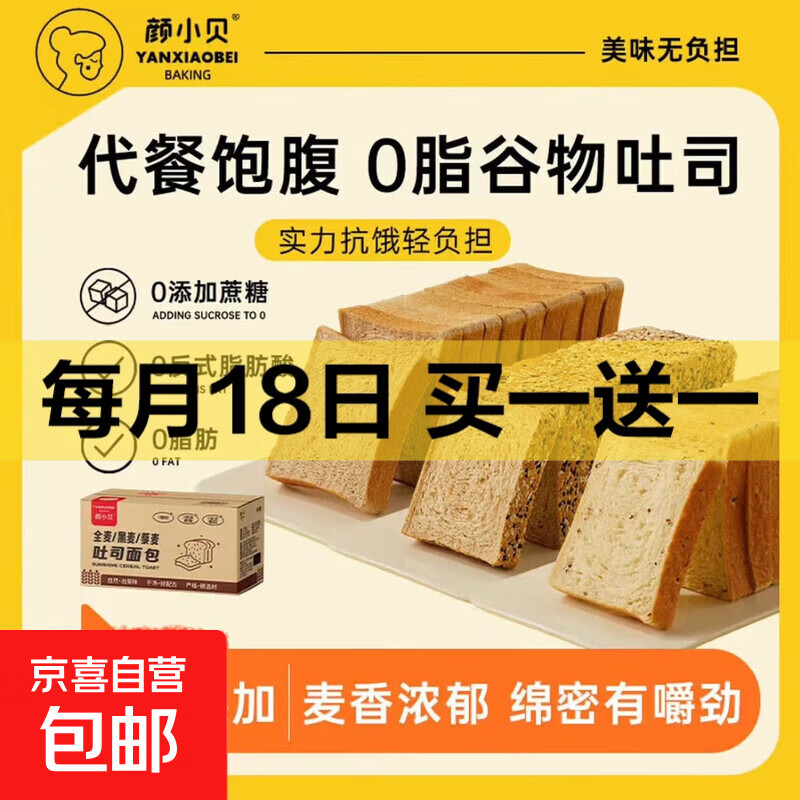 颜小贝全麦面包黑麦早餐面包低脂零食0蔗糖减肥减脂粗粮手撕健身 全麦吐司+黑麦吐司13片【约500g】】