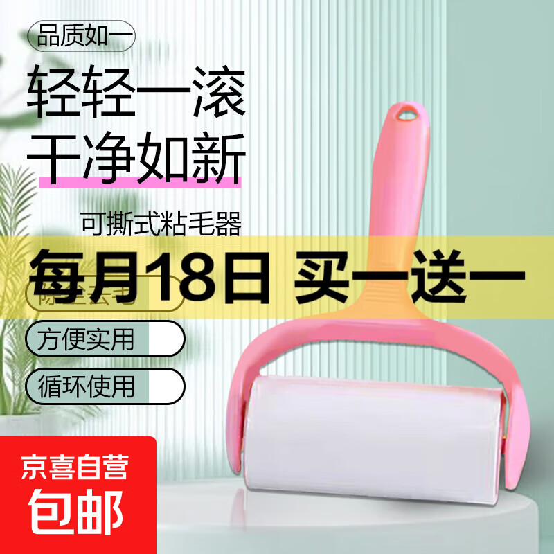 粘胶用品双面胶带 易撕取握感舒适强力粘性 灰尘轻松粘走清洁神器 1个胶粘卷筒【送】1个手柄