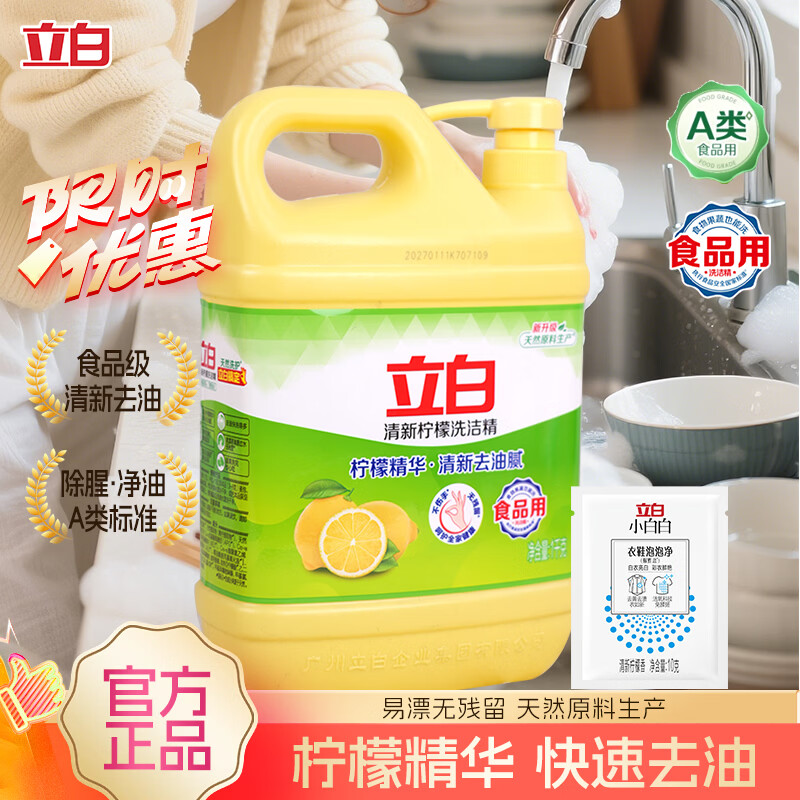 立白柠檬洗洁精食品用洗涤剂级家用实惠装大桶不伤手清新去油腻 实惠装1kg*1桶+泡泡净1袋