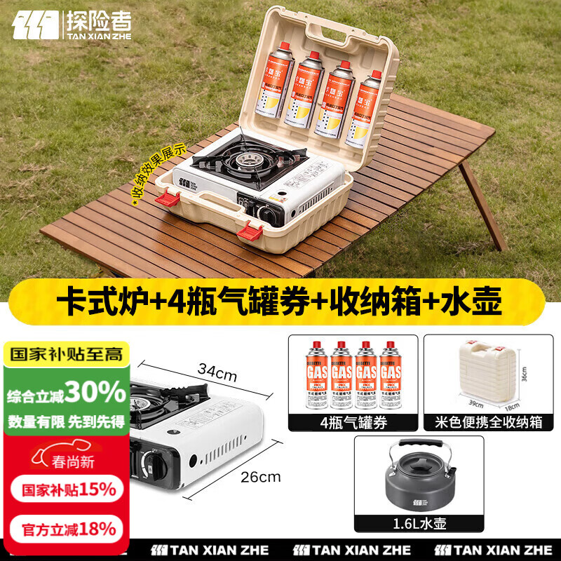 探险者(TAN XIAN ZHE)卡式炉户外野外炉具炊具卡斯炉一体便携式卡磁煤气瓦斯露营燃气灶 卡式炉+箱+1.6L水壶+4气券(赠品)