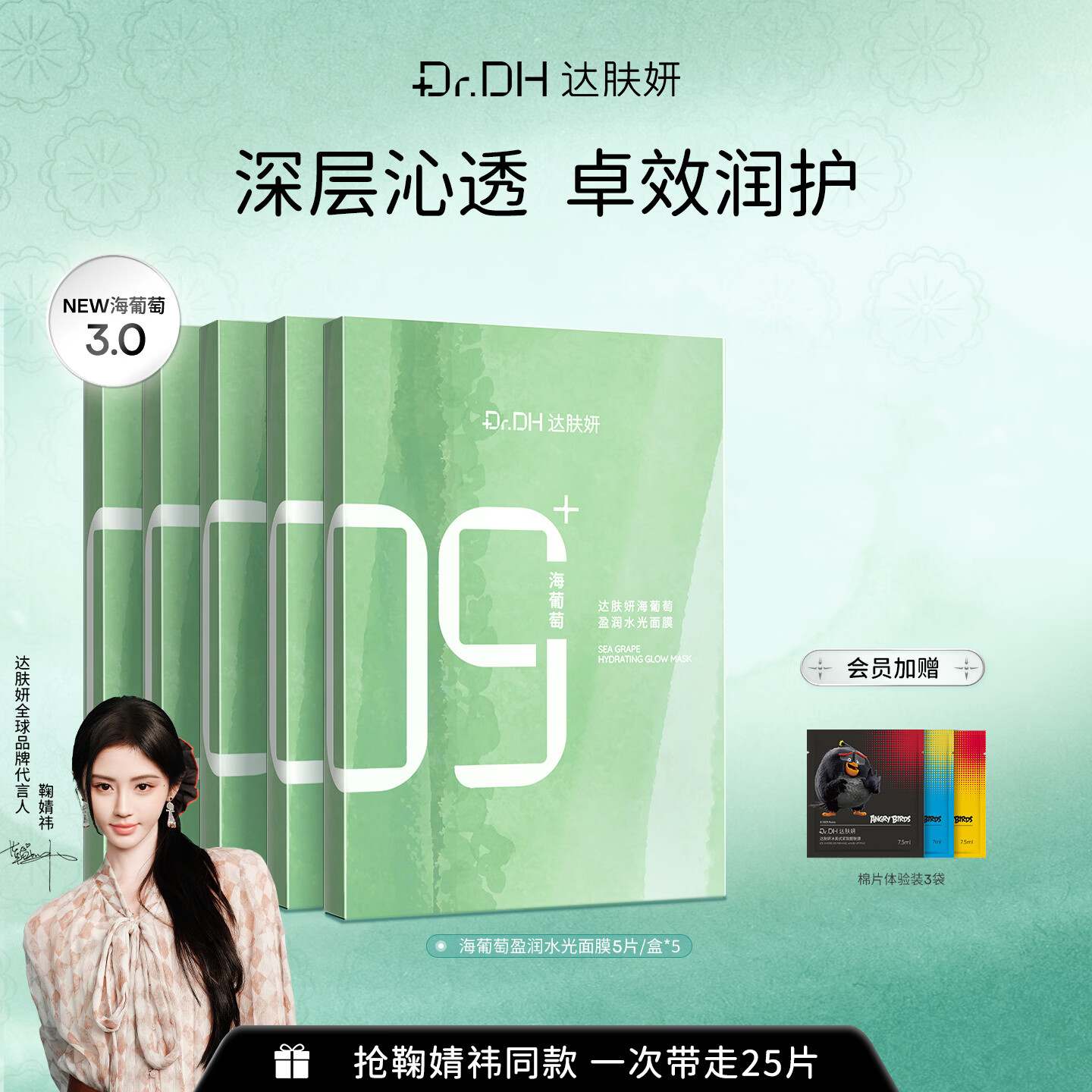 达肤妍海葡萄面膜面部保湿小分子玻尿酸补水修护舒缓润肤弹嫩 海葡萄面膜5盒【到手25片】