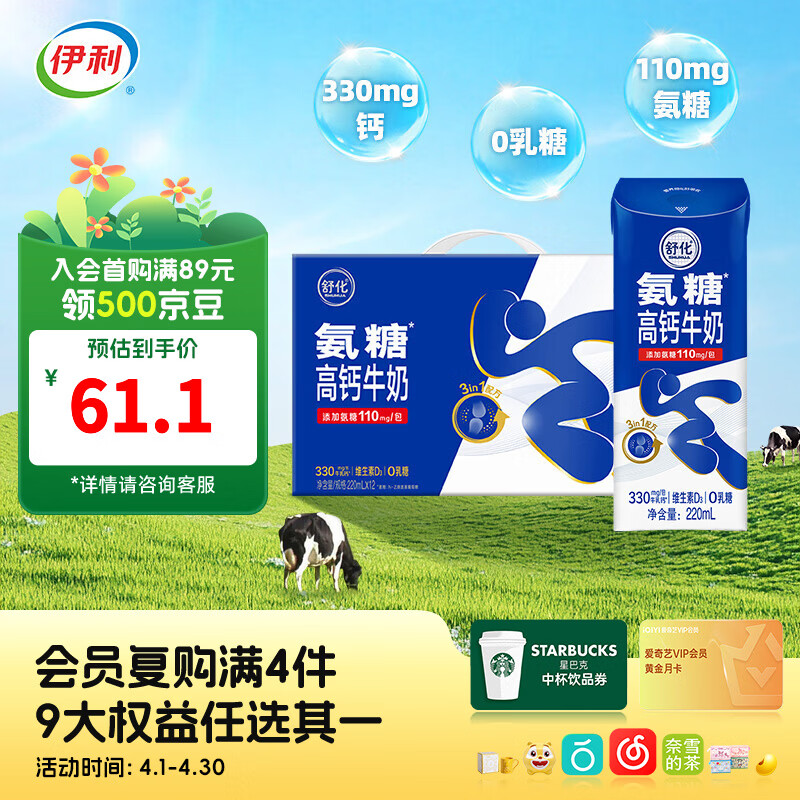 伊利舒化奶零乳糖牛奶系列 适合乳糖不耐受 多种规格可选 礼盒装 【氨糖高钙】无乳糖牛奶220ml*12盒 3-4月产