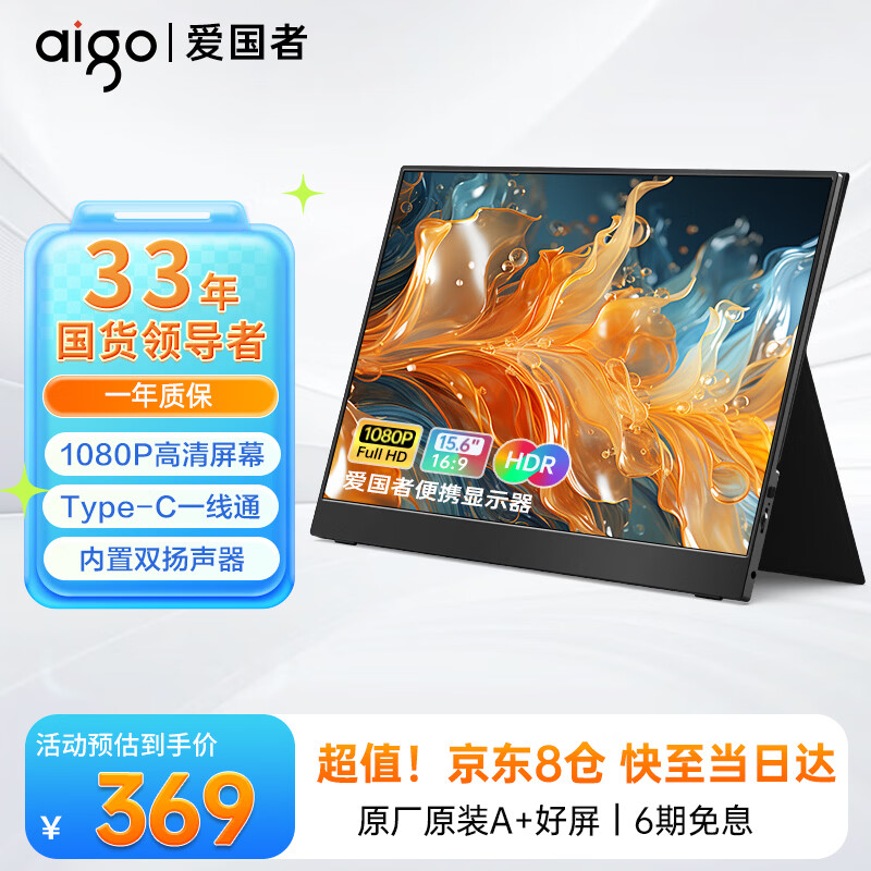 爱国者aigo便携显示器 IPS电脑手机便携屏笔记本支架显示屏扩展屏 PS4/5 Switch副屏Type-C一线通 15.6英寸/皮套款/高清1080P