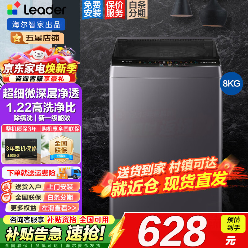 海尔洗衣机6/8/10公斤全自动波轮洗衣机宿舍家用深层净衣除螨洗 专属童装洗 漂甩二合一高性价比Leader 波轮 8公斤一级能效+六维减震+风暴洗+除螨洗