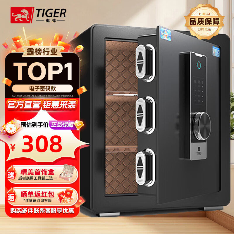 虎牌保险柜家用小型指纹密码WIFI全钢防盗可入墙办公大型保险箱新款保管箱 45cm智铂系列-三层 WiFi智控/钥匙/密码/指纹/(密码+指纹)
