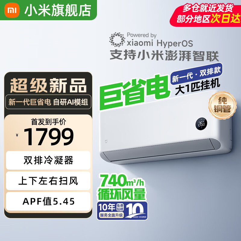 小米(MI)米家空调 1.5匹 巨省电 新一级能效 节能省电 变频冷暖家用卧室壁挂式自清洁舒适空调挂机 大1匹 一级能效 巨省电双排款【26款新品】