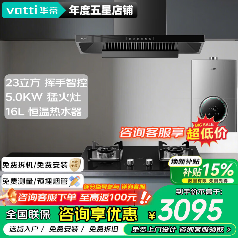 华帝(VATTI)【小飞碟】超薄平嵌油烟机欧式顶吸23立方大吸力厨房抽油烟机燃气灶套装 i11129T 厨房三件套|搭5.0KW猛火灶+16L恒温热水器