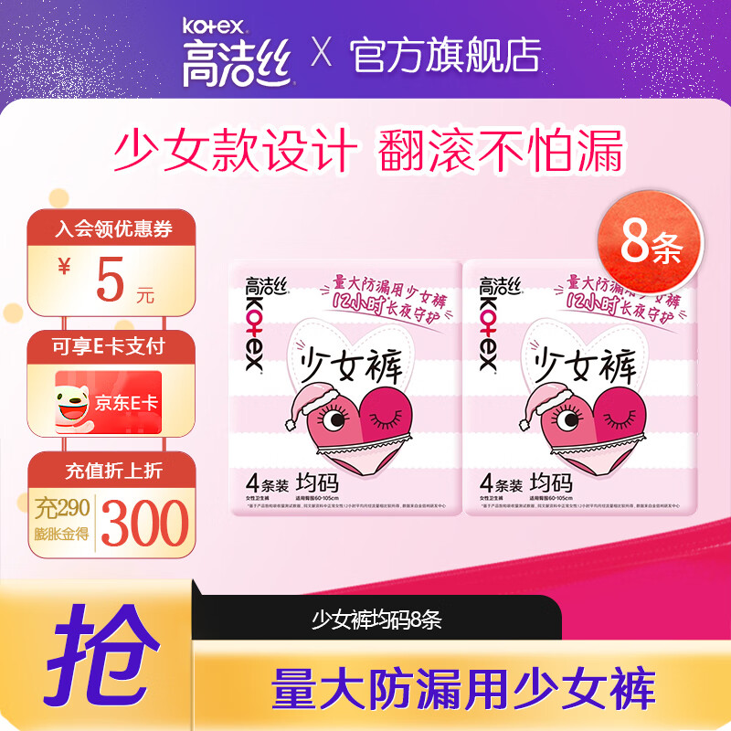 高洁丝均码夜安裤安睡裤安心裤少女裤裤型卫生巾防漏经期裤姨妈巾安全裤 F码-均码 8条 80-110斤