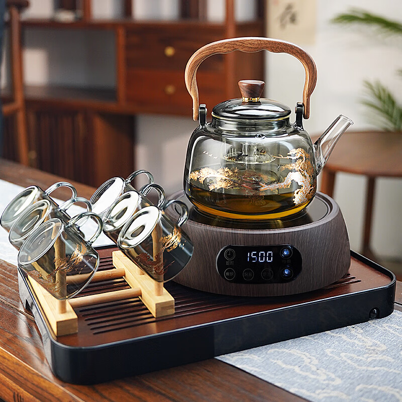 全度玻璃提梁壶家用小型电陶炉煮茶器烧水壶大容量保温玻璃茶壶 【升级新款至尊套组】10件套