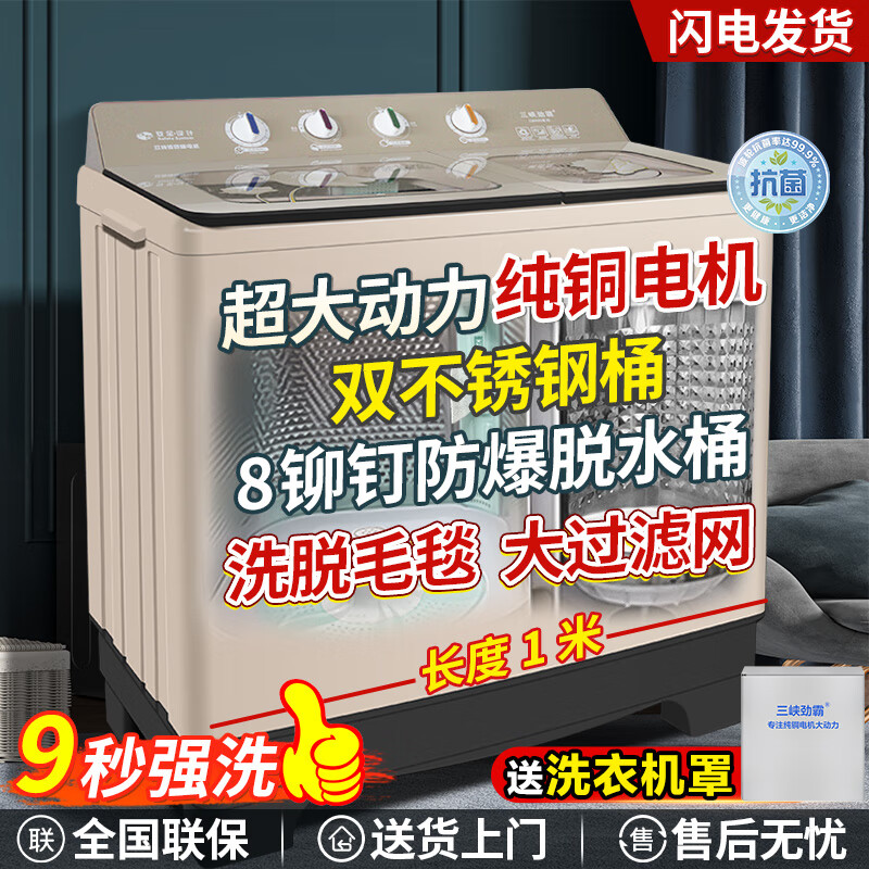 三峡劲霸【纯铜电机】大容量半自动洗衣机家用老式大容量双缸双桶商用酒店宾馆被子毛毯四件套以旧换新 30公斤钢桶金【9秒强洗+滚珠纯铜+防爆脱水】 双缸