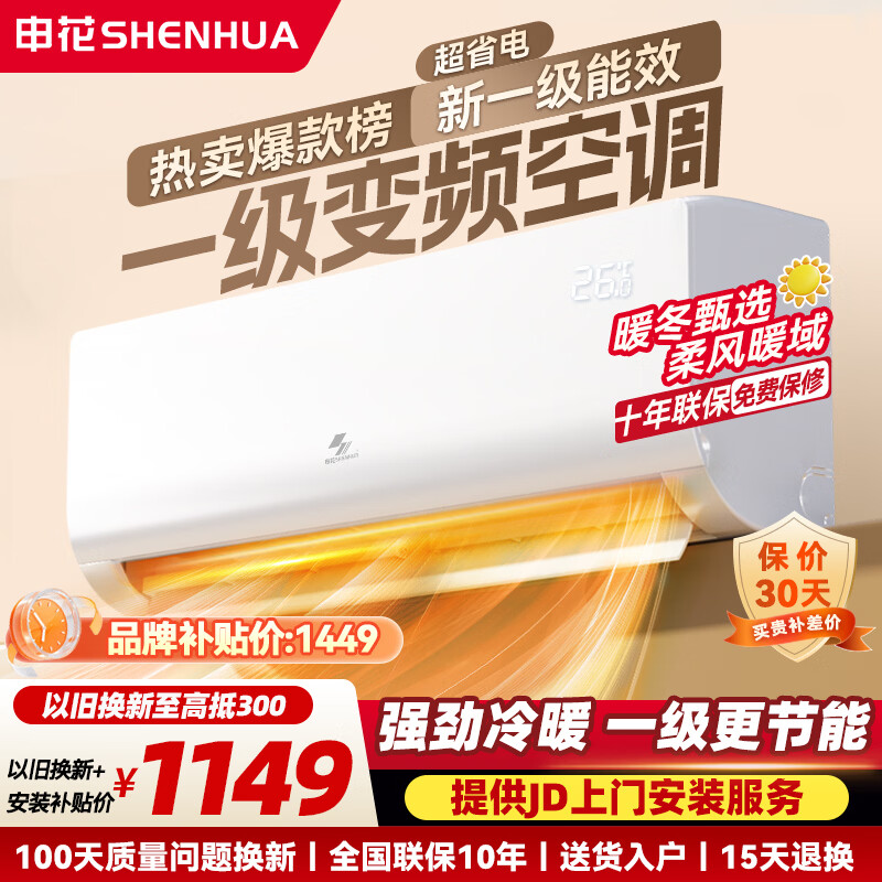 申花空调补贴 新一级能效 大1.5匹冷暖节能空调挂机 家用 壁挂式 大1P省电变频 以旧换新 快速冷暖 巨省电 大1.5匹 一级能效 冷暖变频 Pro 无安装 送货入户