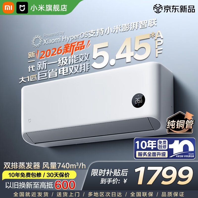 小米(MI)空调米家 1.5匹 巨省电 新一级能效 变频冷暖 家用卧室 壁挂式自清洁舒适空调挂机 大1匹 新一级能效 巨省电双排款【新品】