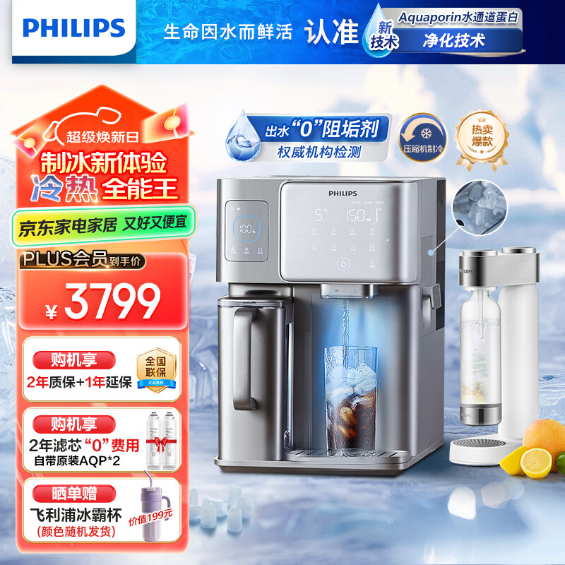 飞利浦(PHILIPS)冰块净水器家用冰境i1台式即热免安装净饮机加热直饮一体机饮水机直饮制冰机【重磅新品】ADD8600 两芯装+气泡水瓶