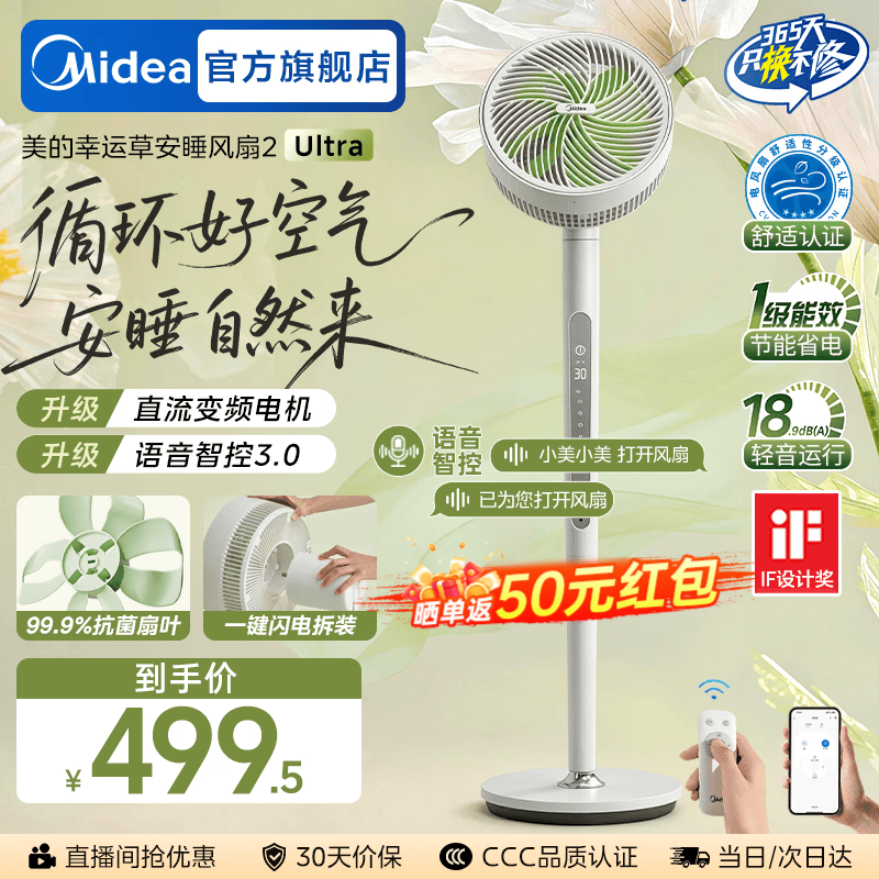 美的(Midea)空气循环扇直流变频电风扇落地扇家用安睡一级能效电扇轻音净化扇轻羽扇 【幸运草安睡2.0 一键拆装】AI语音