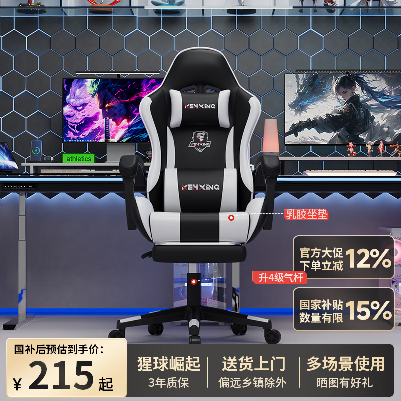 科幻猩电竞椅电脑椅子休闲舒适久坐大学生宿舍家用办公可升降座椅躺椅 暴雪白二代-乳胶坐垫+3级气杆-搁脚 联动扶手
