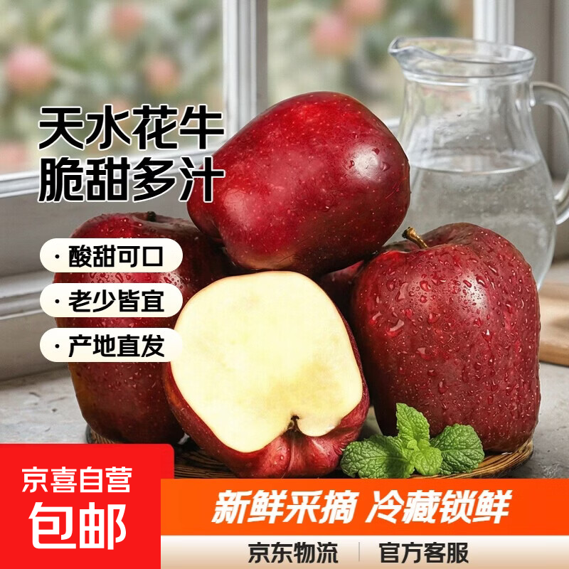 正宗甘肃天水新鲜采摘花牛苹果平安果 净重8.5斤中果75mm+