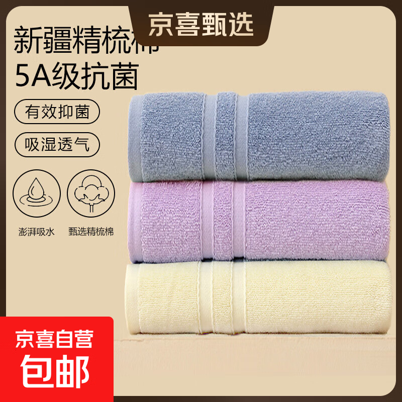 【洁丽雅同款】5A抗菌纯棉毛巾马卡龙色夏季运动毛巾情侣洗脸家用 5A抗菌面巾-蓝+紫+黄 3条
