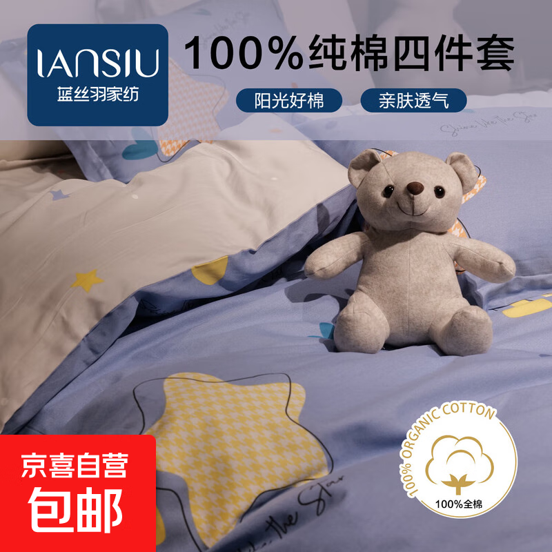 【品牌清仓】蓝丝羽100%全棉四件套纯棉亲肤高端裸睡双人家用件套 时光印记 【100%全棉】 1.5/1.8/2米床 床单款 被套2*2.3m