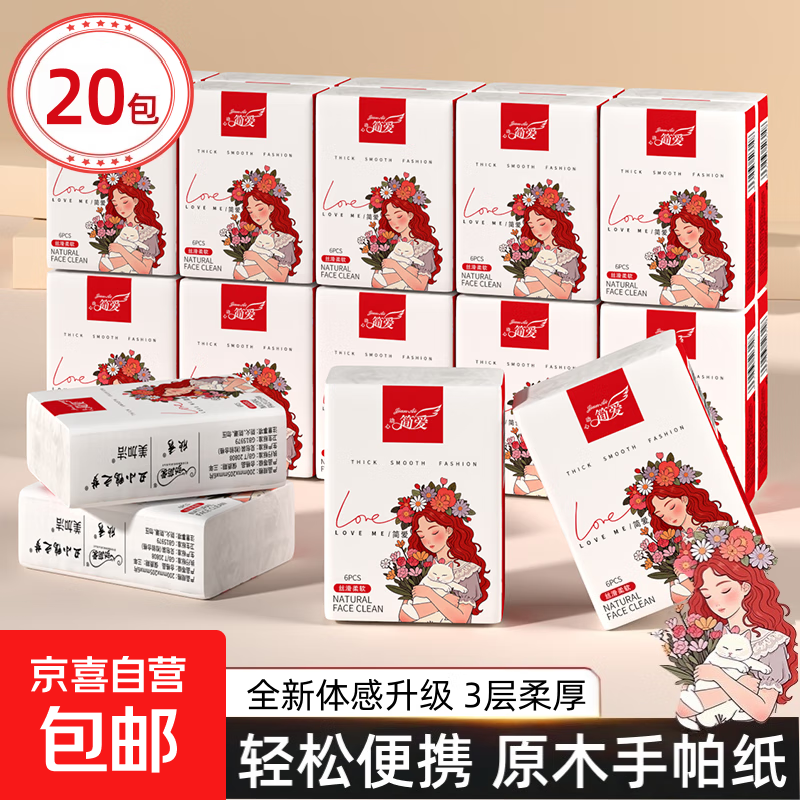 柚子姑娘手帕纸 6片装纸巾小包抽纸面巾纸餐巾纸学生款 3层 6片*20包