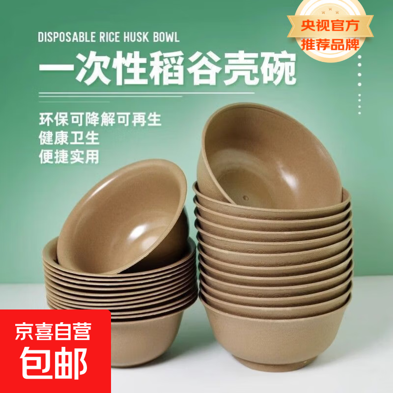 【央视认证】稻壳餐具一次性碗加厚食品级可降解碗筷套装盘碟杯勺 250ml咖啡色加厚稻壳碗【20只】