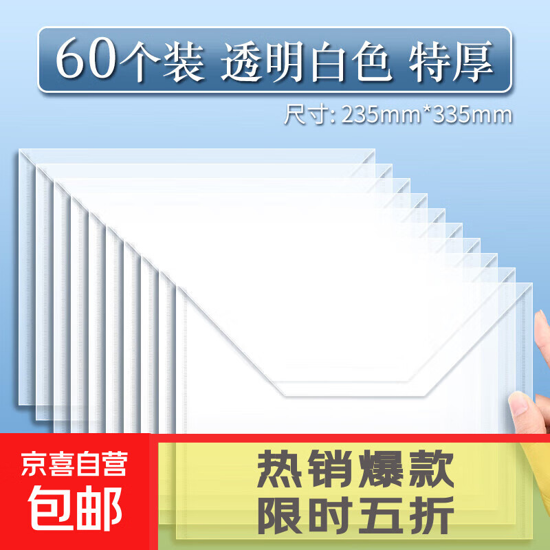 a4透明文件袋加厚收纳办公用品防水大容量学生试卷资料档案袋 【60个装】透明白色/特厚