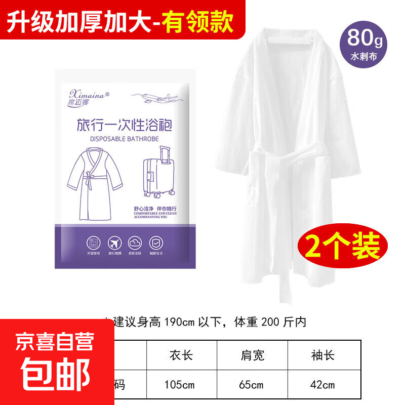 一次性浴袍浴裙免洗加厚睡衣温泉美容院浴服出差旅行便携男女通用 【加厚有领款】一次性浴袍-2个