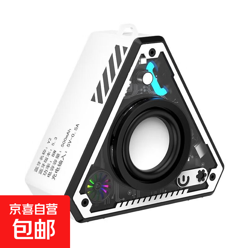 三角机甲无线蓝牙音箱小钢炮双机互联便携式桌面音响车载音响 【珍珠白】HIFI音质 机甲低音炮
