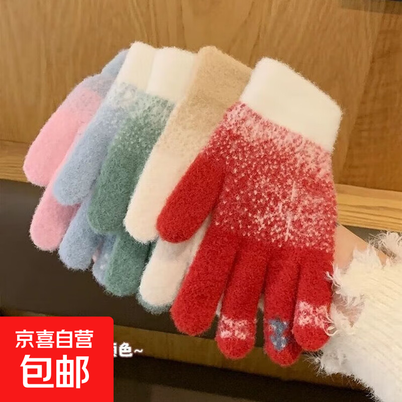 毛茸茸针织手套女生秋冬季韩系可触屏漏二指写字骑行防冻毛绒保暖 圣诞树漏二指卡其色