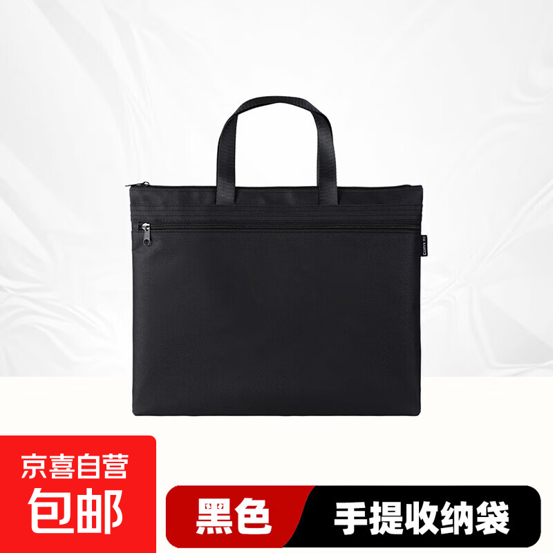 齐心COMIX公文包拉链手提包大容量帆布包多层商务公文包电脑包办公用品学生科目分类包大容量分层 A8158 手提收纳袋 【黑色390*305MM】