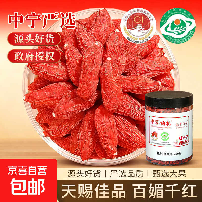 宁夏枸杞中宁枸杞子特级枸杞子有机泡水泡茶泡酒政府认证可溯源 【政府认证】中寜特级枸杞子500g【罐装】精选