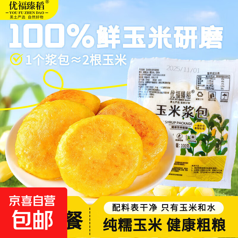优福臻稻香糯玉米浆包东北粑粑饼低脂粗粮早餐代餐零食干粮快餐 玉米浆包100g*25包