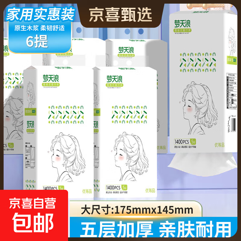 【优等品】柚子女孩1400张四边压花悬挂式抽纸可湿水木浆纸 亏本冲量: 5层 1400张*6提