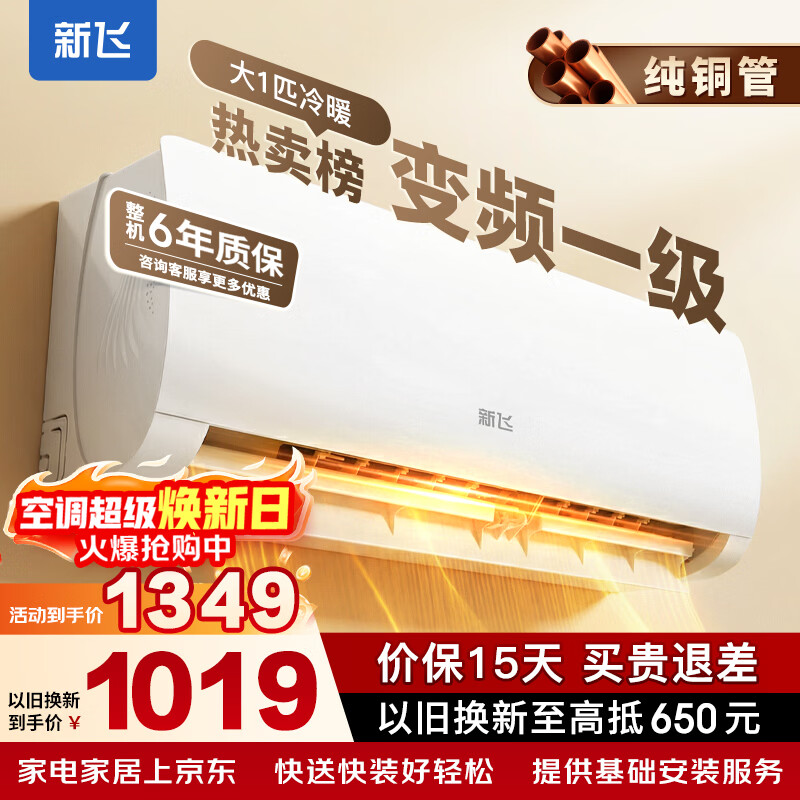 奥克斯(AUX)家电补贴20%空调 大1.5匹/1匹新一级/三级变频冷暖 节能静音除菌自清洁空调挂机 以旧换新 大1.5匹 三级能效 【升级冷暖变频】15-22平