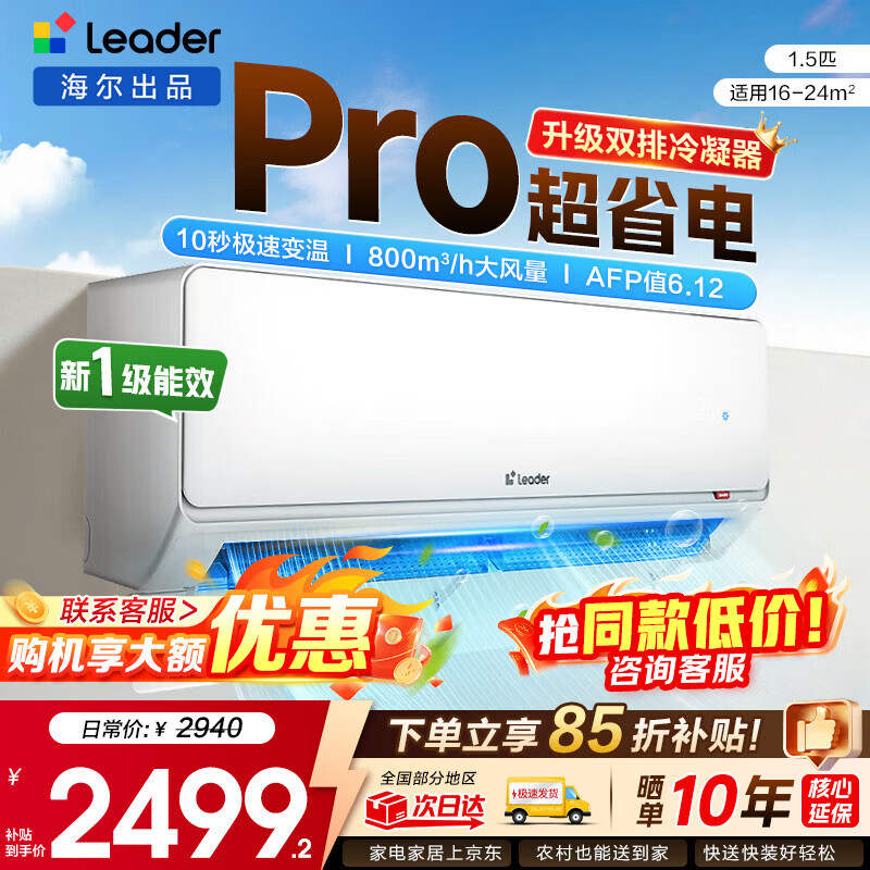 海尔空调出品统帅大2匹/3匹p大挂机变频新一级节能独立除湿自清洁智能WIFI冷暖家用大卧室客厅空调 【3月新品】 2匹 【懒人神机】防直吹+大风量