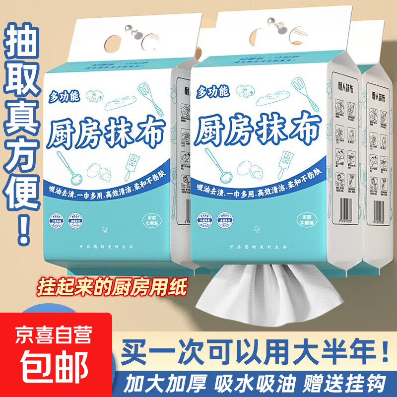 诗和舒懒人抹布干湿两用厨房用纸专用纸巾厚实吸水吸油清洁用品 1层 95抽*3提