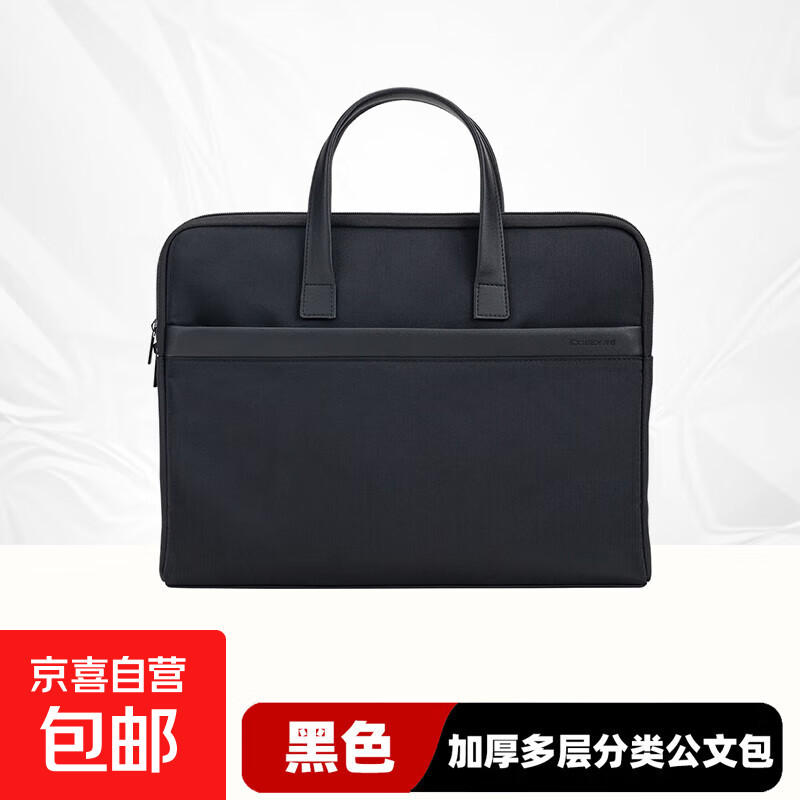 齐心COMIX公文包拉链手提包大容量帆布包多层商务公文包电脑包办公用品学生科目分类包大容量分层 A8167公文包【黑色375*275*50mm】