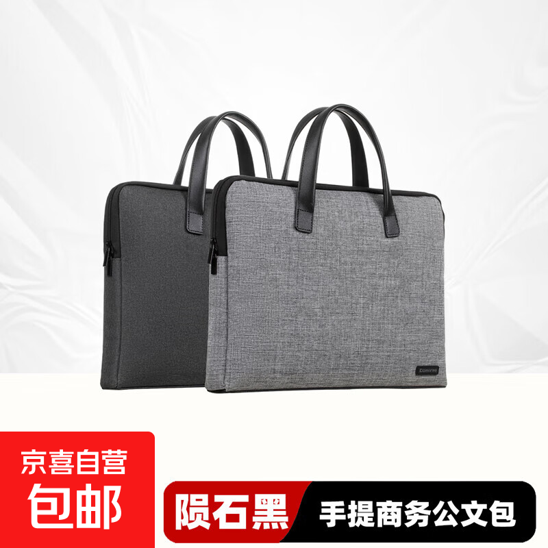 齐心COMIX公文包拉链手提包大容量帆布包多层商务公文包电脑包办公用品学生科目分类包大容量分层 A8118公文包【陨石黑400*290*42MM】