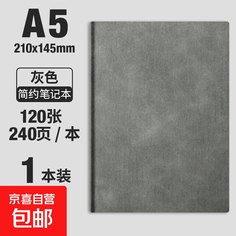 羊巴皮笔记本本子a5商务办公专用记事本皮面本加厚b5工作会议记录本复古高级得力同款可开发票 【加厚】A5简约款1本|灰色(240页/本)