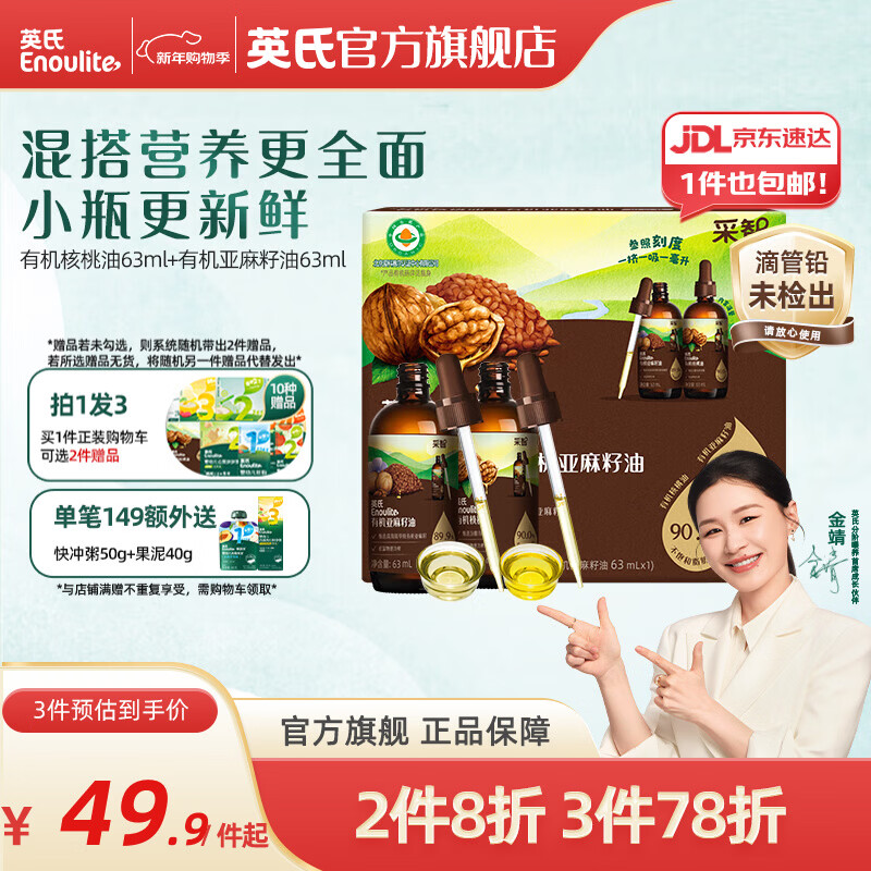 英氏采智有机核桃牛油果亚麻籽油儿童热炒凉拌食用油组合油 【黄金组合】核桃油+亚麻籽油