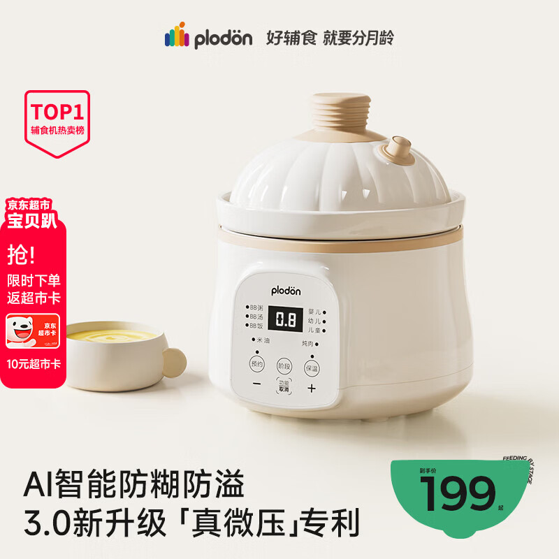 浦利顿(PLODON)婴儿辅食锅分月龄BB煲粥饭锅炖汤升级AI防糊防溢宝宝微压电炖锅