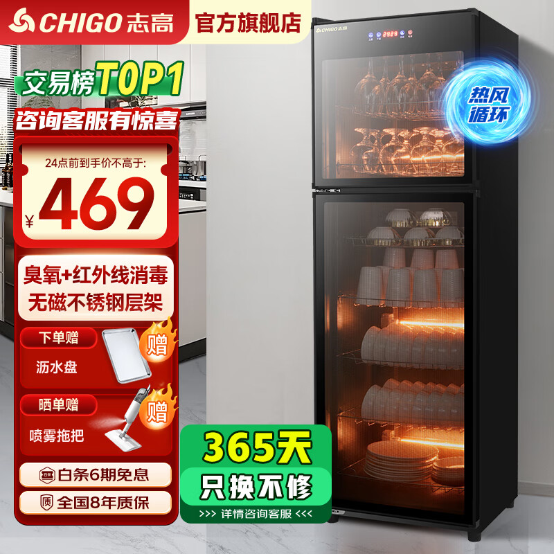 志高消毒柜家用立式消毒碗柜小型免沥水商用家用家庭碗筷柜单门双门大容量 【380型智控】红外线+臭氧+热风+沥水盘 免沥水