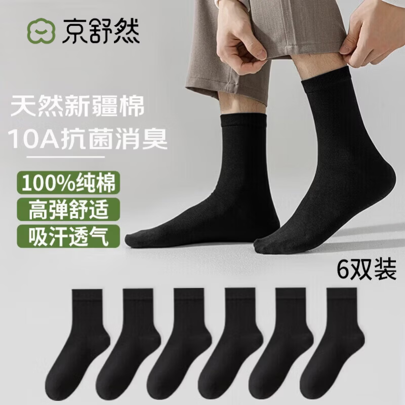 京舒然京东自有品牌棉袜子男新疆棉10A级抗菌中筒亲子袜100%纯棉