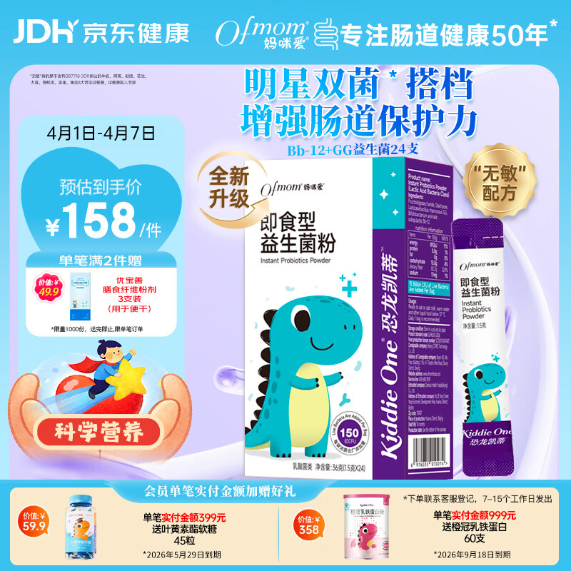 妈咪爱小恐龙含婴幼儿可用益生菌株GG+动物双岐杆菌Bb-12益生菌24支