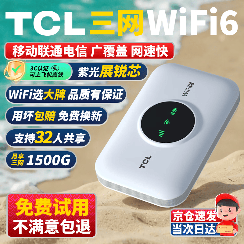 TCL随身wifi三网通用免插卡无线wifi6车载4G路由器随身便携无限制移动联通电信全国通用2026款5GXY15B 【旗舰顶配版】3000毫安大电池三网任切 不限速不虚标月享1500G流量