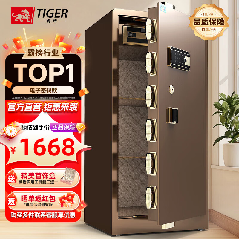 虎牌保险柜家用小型指纹密码WIFI全钢防盗可入墙办公大型保险箱新款保管箱 120cm系列-单门磨砂咖 密码款(钥匙/密码解锁)