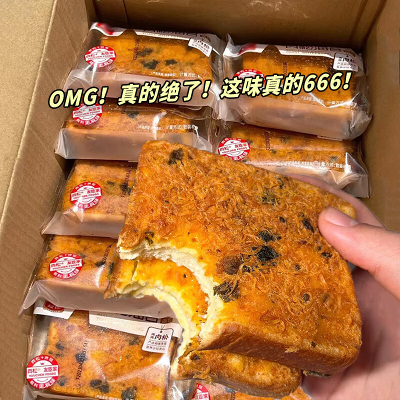 舸渡海苔肉松味早餐吐司面包整箱即食充饥蛋糕零食小吃休闲食品好吃的 一箱16包+16包【整箱32包】1600g