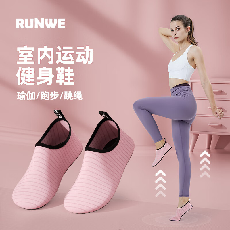 朗威室内健身鞋健身装备软底防滑瑜伽鞋运动舞蹈鞋室内运动鞋瑜伽器材 樱花粉 36-37