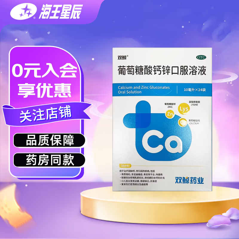 [双鲸]葡萄糖酸钙锌口服溶液 10ml*24袋 3盒装 10ml*24袋/盒