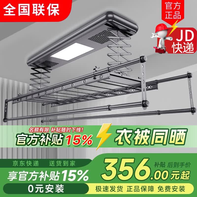 太太夸电动晾衣架阳台全自动升降语音遥控智能衣机阳台室外风干烘干衣架 星际灰【衣被同晒】 四杆+照明
