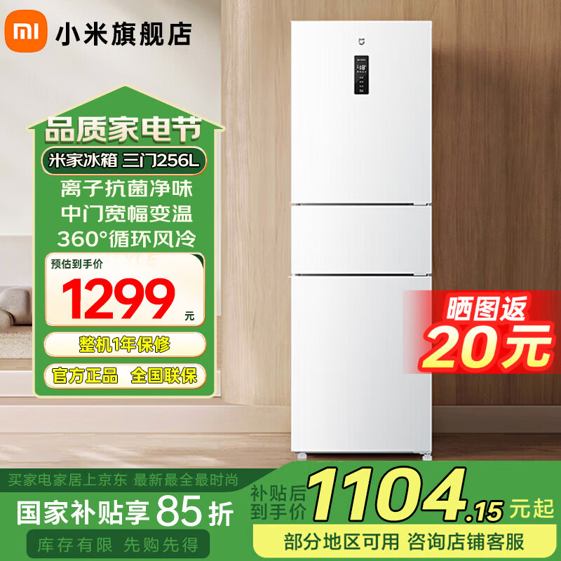 米家小米256L三门冰箱小型家用风冷无霜节能安静运行一级能效租房宿舍BCD-256WMSA01 BCD-256WMSA01